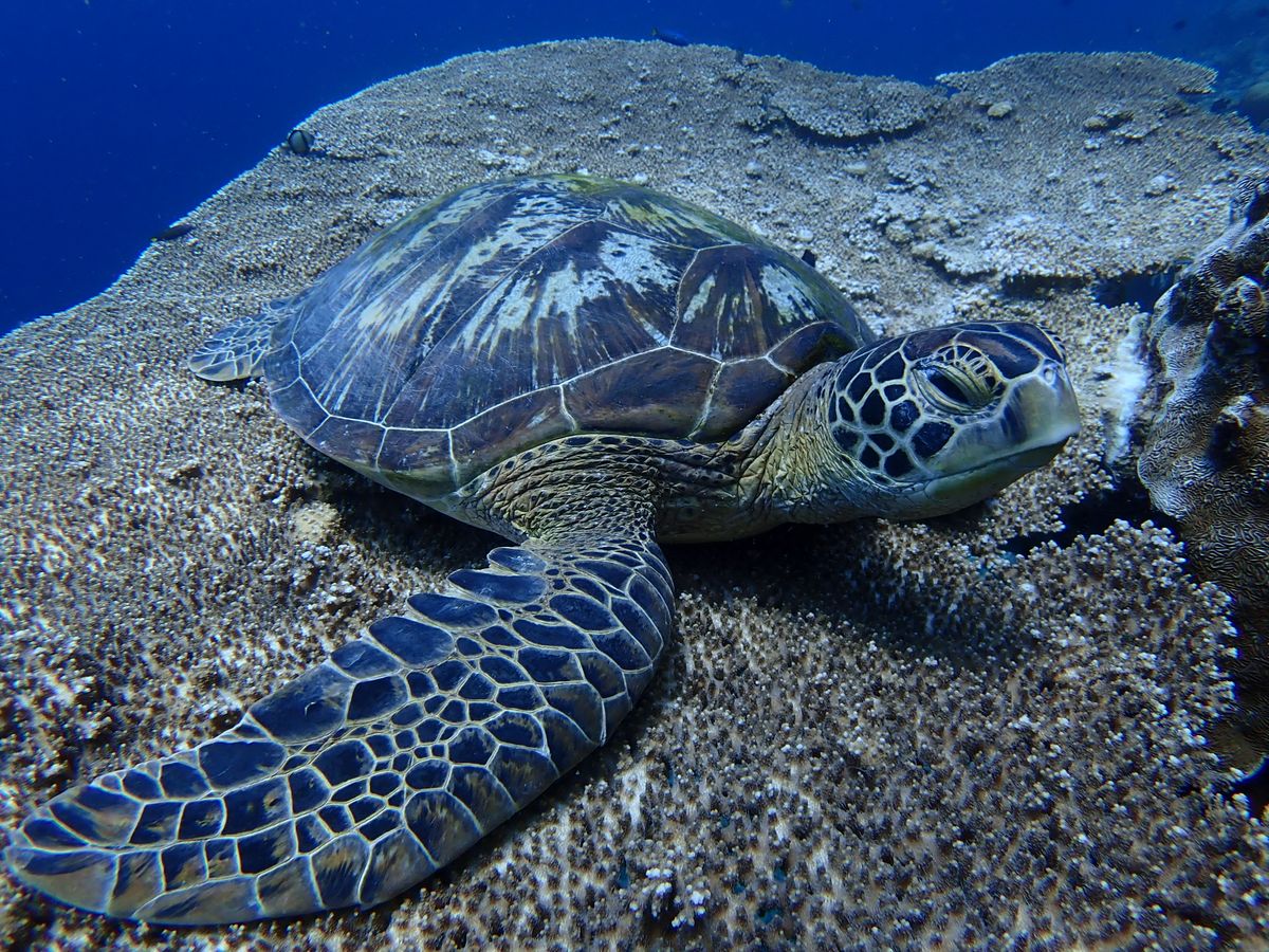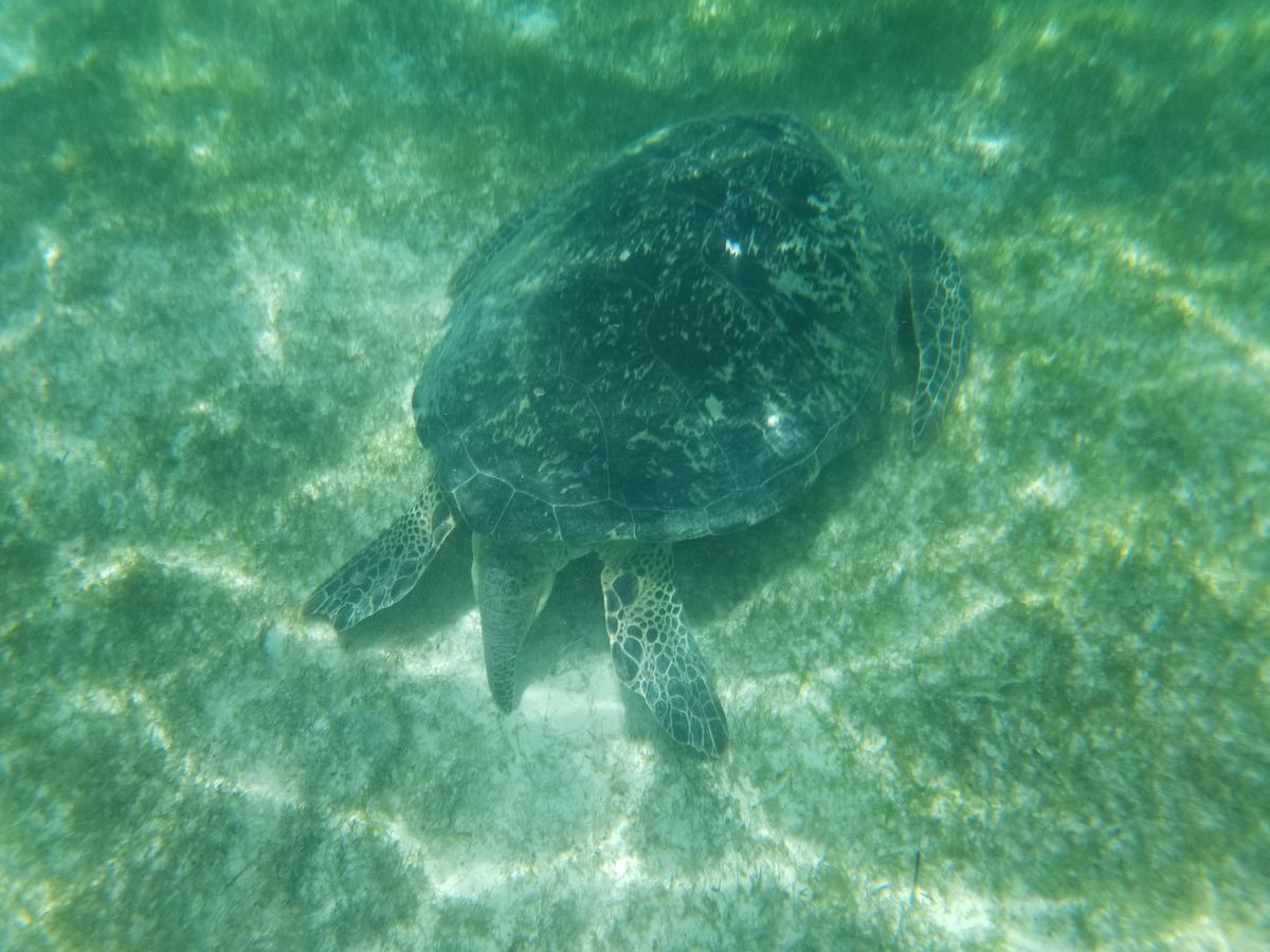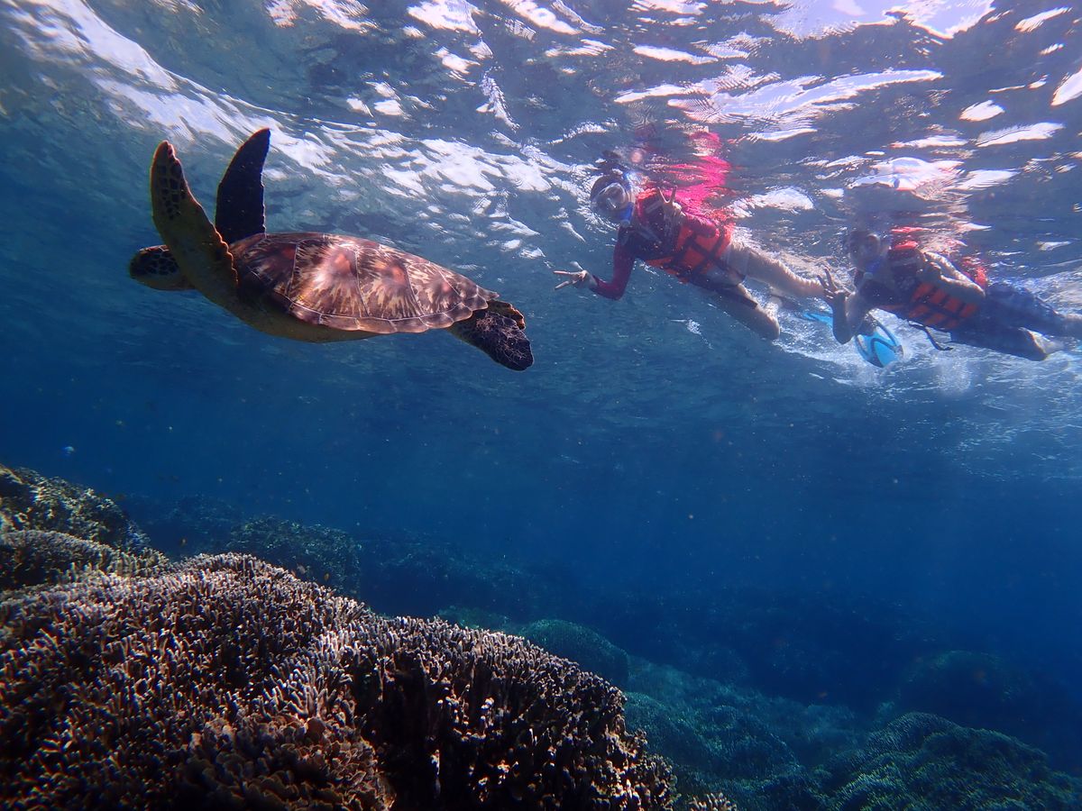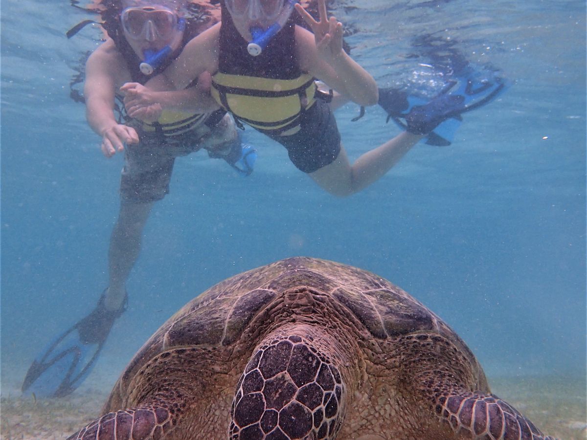 ウミガメは過去見てきたどこのウミガメよりも大きく、良くも悪くも観光客慣れしているので、海の中で静かに漂っているところを観察で、とても大満足です。
