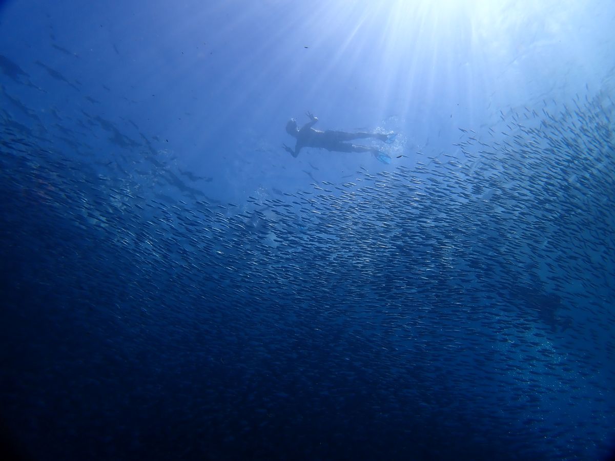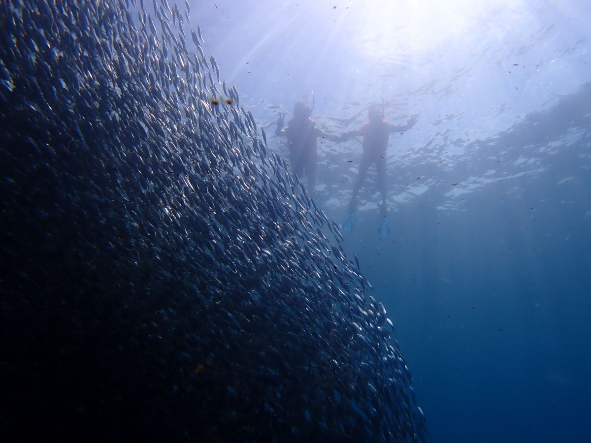 無事、ジンベイザメ、ウミガメ、イワシの大群に会えました。