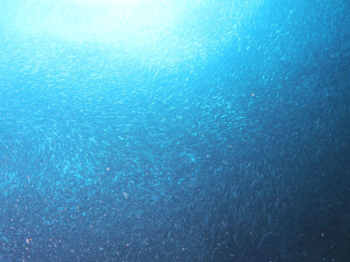 イワシは数の多さに驚き 大群で海の色さえ変えて 色んな形を描いてました。