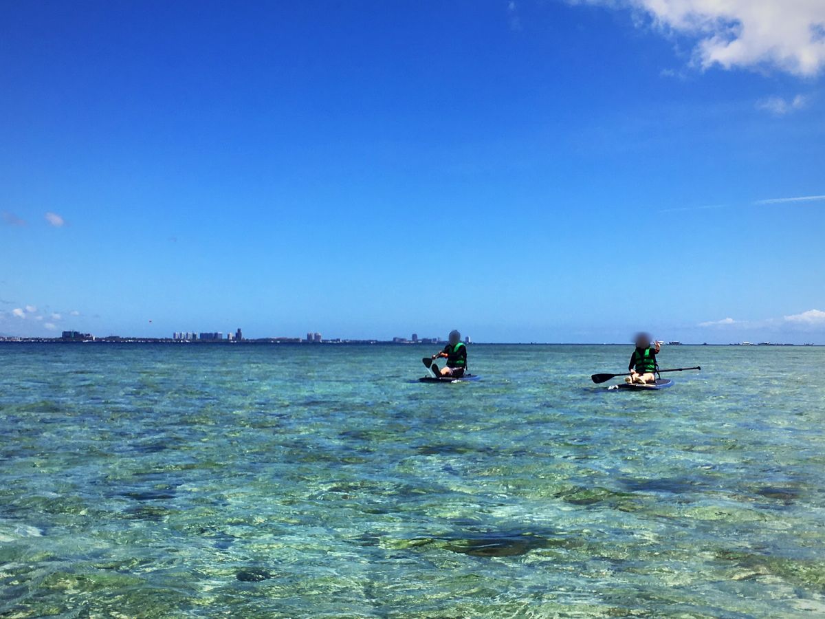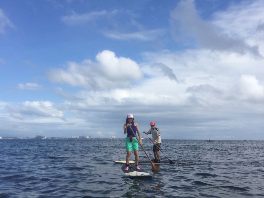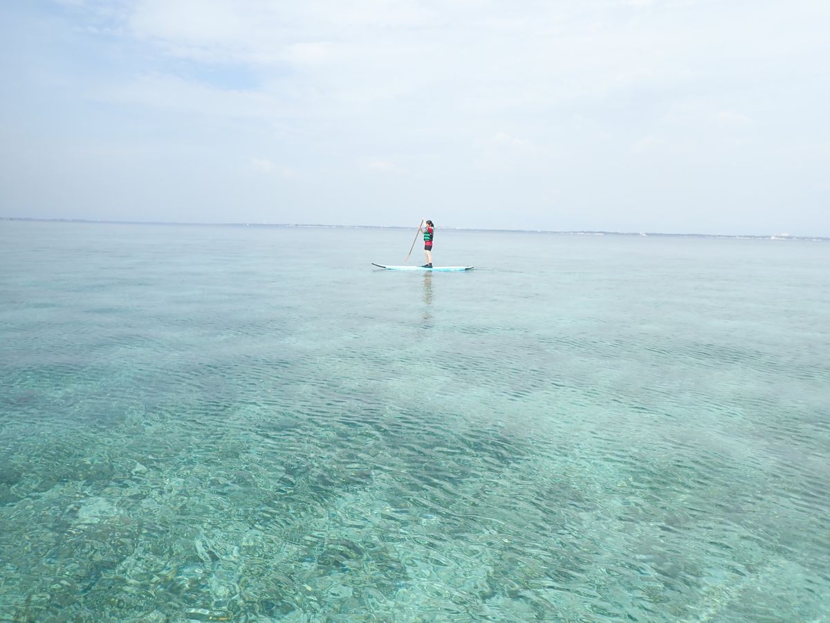 サップ自体は海も穏やかで浅い場所でできるので不安もなくできました。途中休憩なしで行ったので多少の疲れはありましたが、達成感があり良かったです。