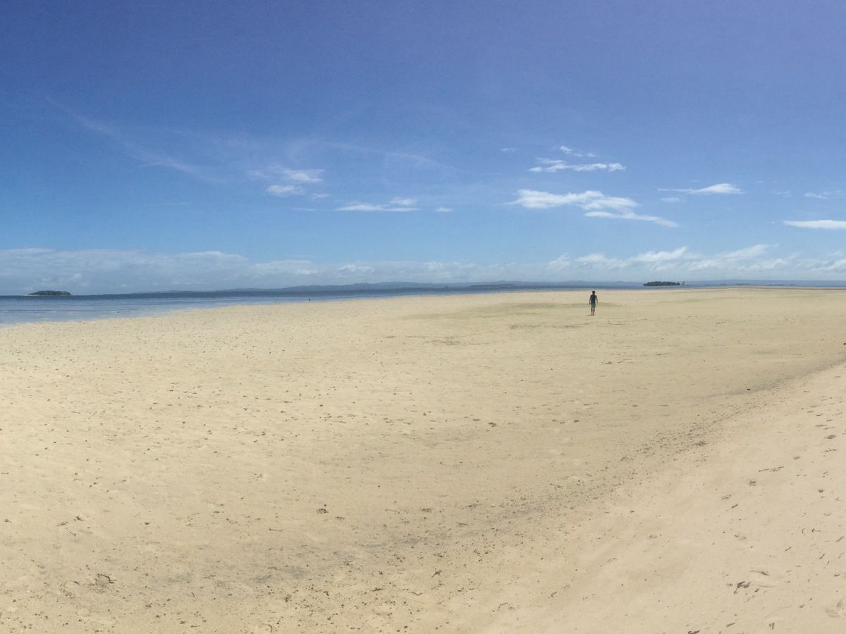 誰もいない浅い海を1時間ほどかけて
