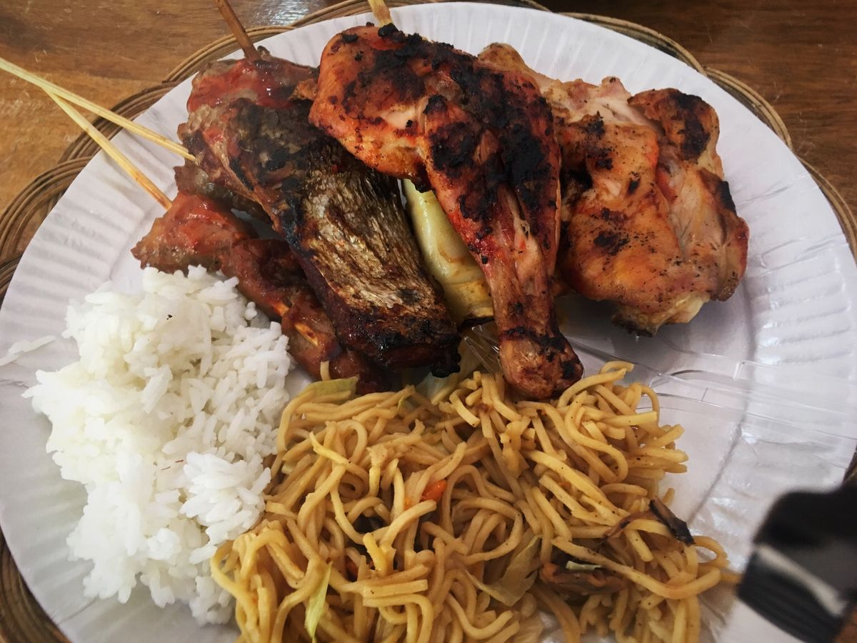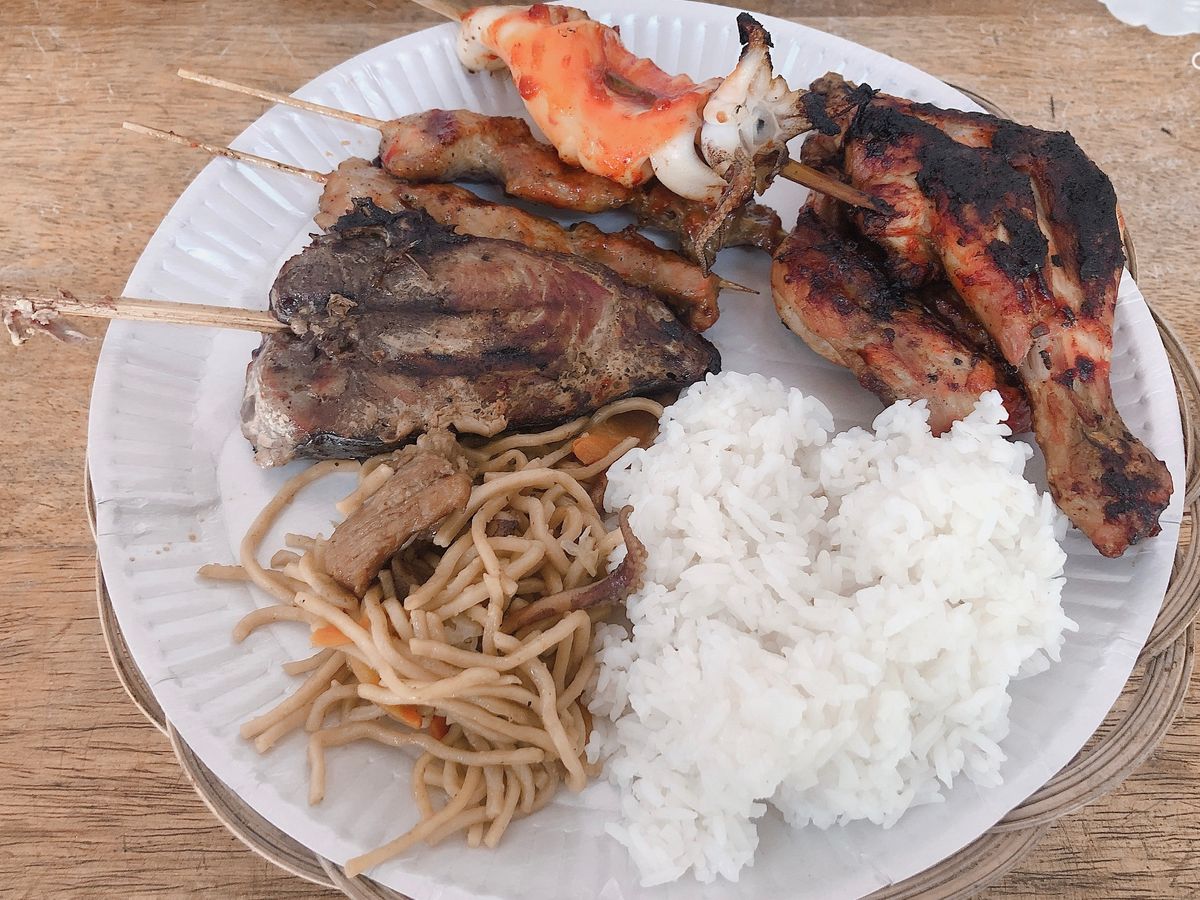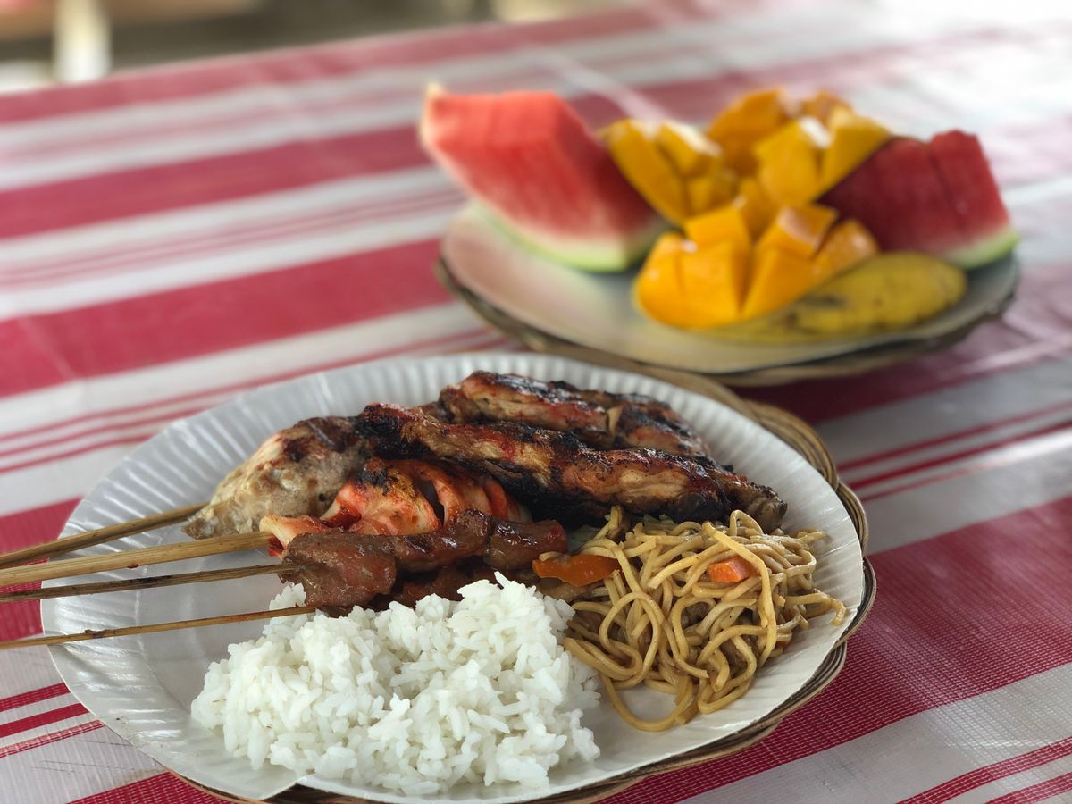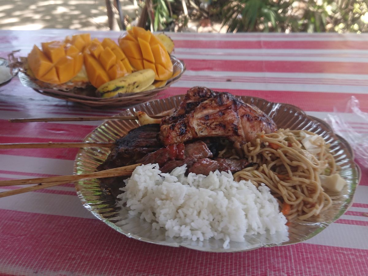 ・BBQは、調理された食事が屋根のあるテーブルで頂けます。女性には少し量が多いです。肉類だけでなく、米や焼きそば、フルーツも付いてきます。よく焼きで美味しかったです。