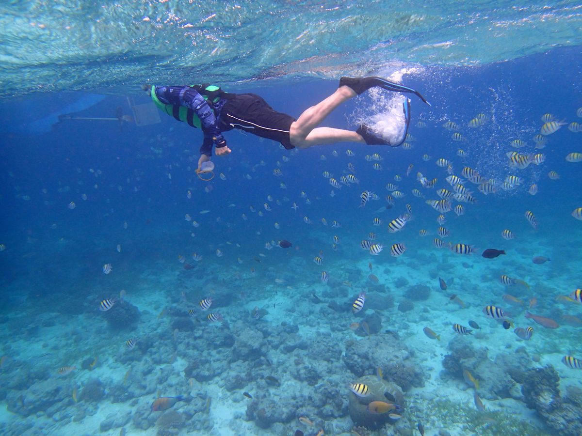 ・シュノーケリング:自由に海を泳ぐことが出来、カラフルな魚、綺麗な海を満喫する事が出来ます。(ただ他のツアー船、人も多くいます。)ライフジャケットを支給されるので泳ぎが得意じゃない方もいけます。また、ライフジャケットに魚の餌を入れた入れ物をつけられるので、すごく魚が寄ってきます!