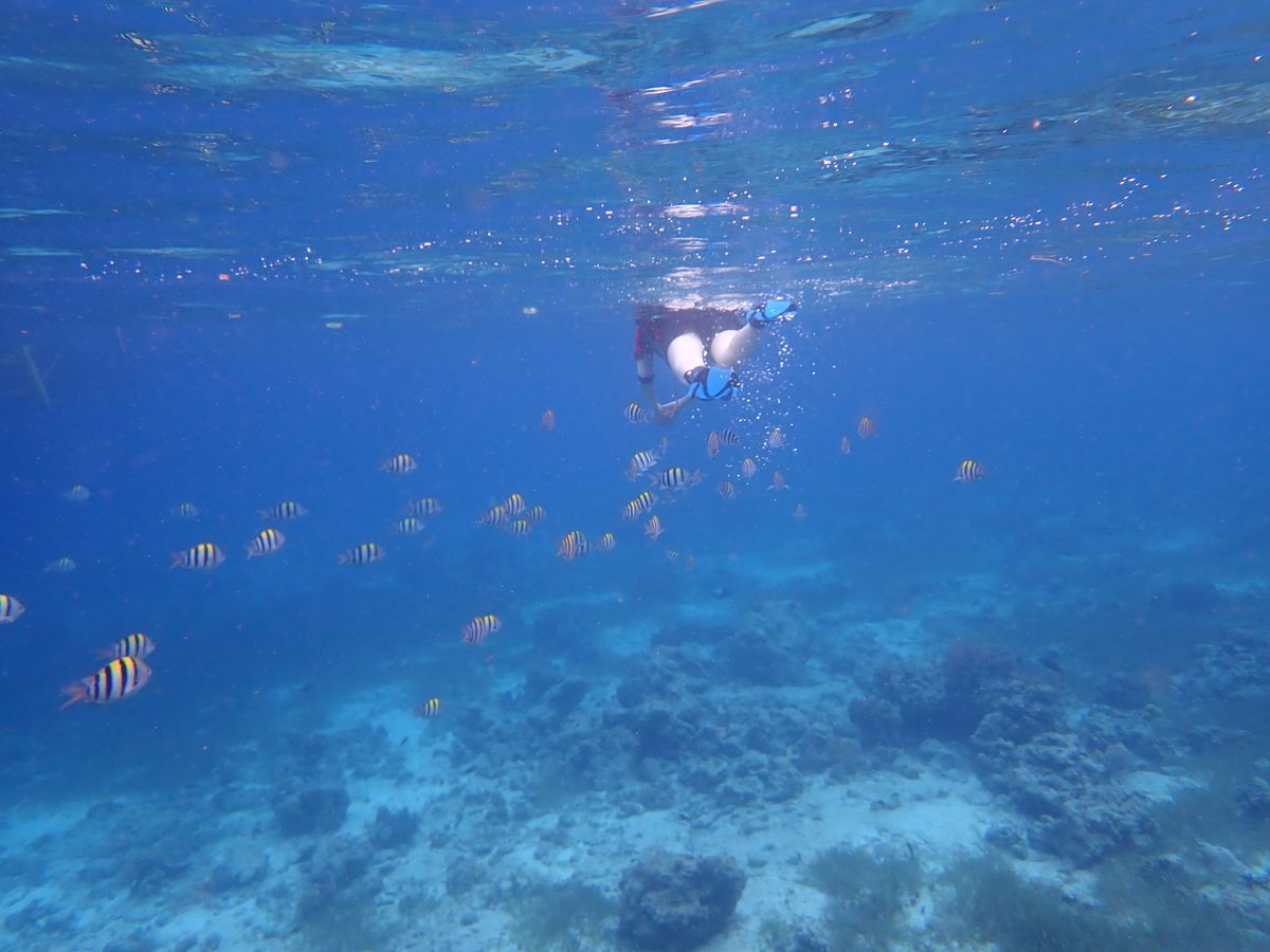 シュノーケリングは美しい魚を見ることができてとても楽しい経験でしたが、小さなクラゲもいたので肌が弱い方は長袖を着たほうがいいと思いました。