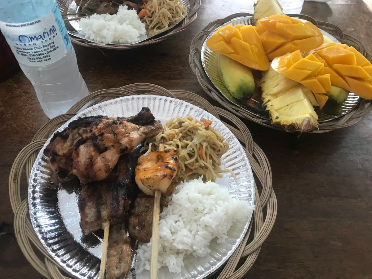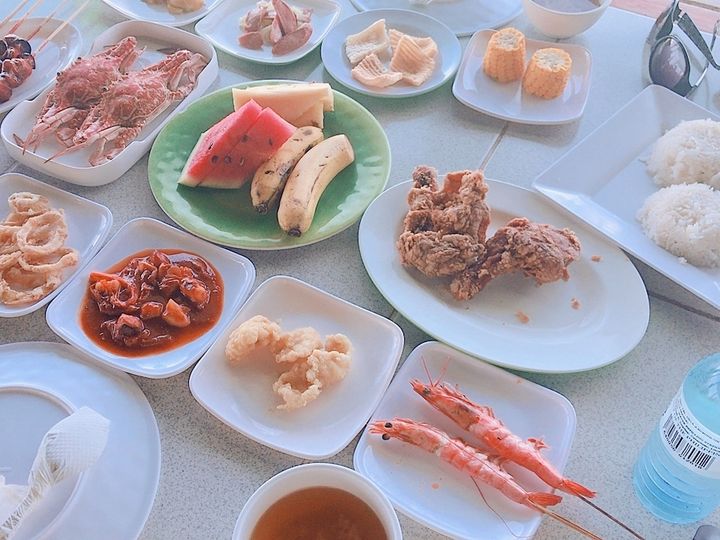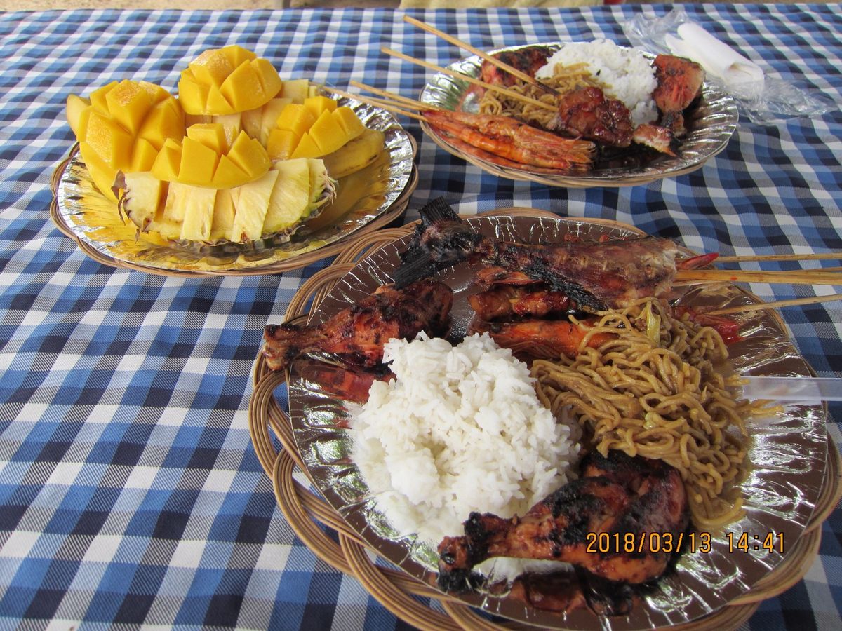 BBQでは、お皿にお肉、エビ、魚、ライス、焼きそばが盛ってありました。お肉には、甘辛いタレが付いていて日本人好みだなとおもいました。魚は味がなかったので、醤油か塩が欲しかったです。焼きそばも味がなくちょっと残念でした。