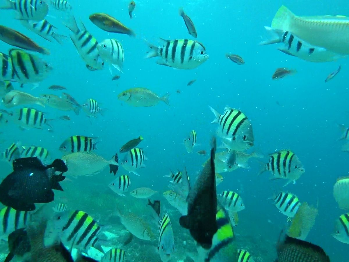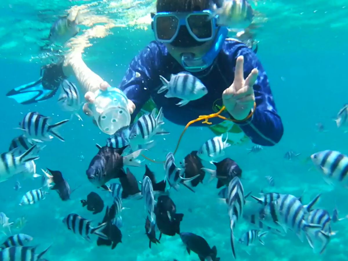 特にシーウォーカーでは、顔も濡れず呼吸も楽にできて、安心して海の中を散歩できました!餌を持っているのでたくさんの魚に囲まれてステキな経験でした!