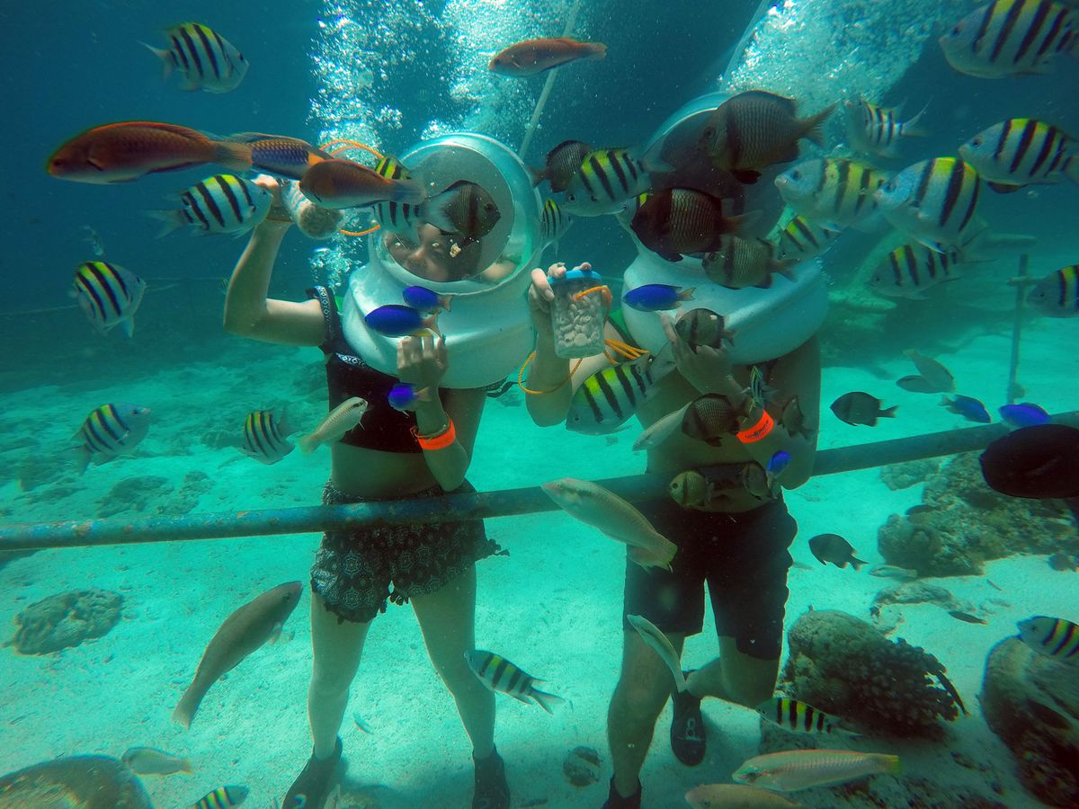 現地には日本人スタッフがいるので安心です!シーウォーカーでは大きなヘルメットのようなものを被るので髪が濡れることもなく呼吸も普通にできて、視界も良好な中で魚を間近で見たり魚の餌やりが出来るのでとても貴重な体験でした!水中カメラは必須です!また、インストラクターの方も非常に親切で安心して楽しむことができました。最終バスの16時半までシュノーケリングやドクターフィッシュなど色んなアクティビティがやり放題で、昼食も美味しくボリューミーでした!タオルは貸し出してくれるので不要です。気になった点としては、トイレやシャワーです。衛生面が結構気になるという方は少々覚悟して行った方がいいのかな、という感じです。また、お金はある程度持って行った方がいいかもしれないです。最初から最後まで刺激的な体験をすることができ、セブ島を満喫することができました。セブ島を訪れた際には是非一度参加してほしいです!