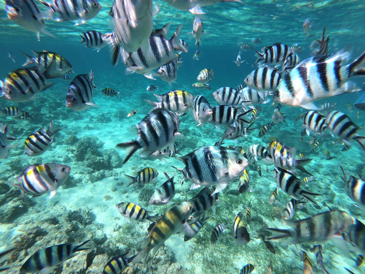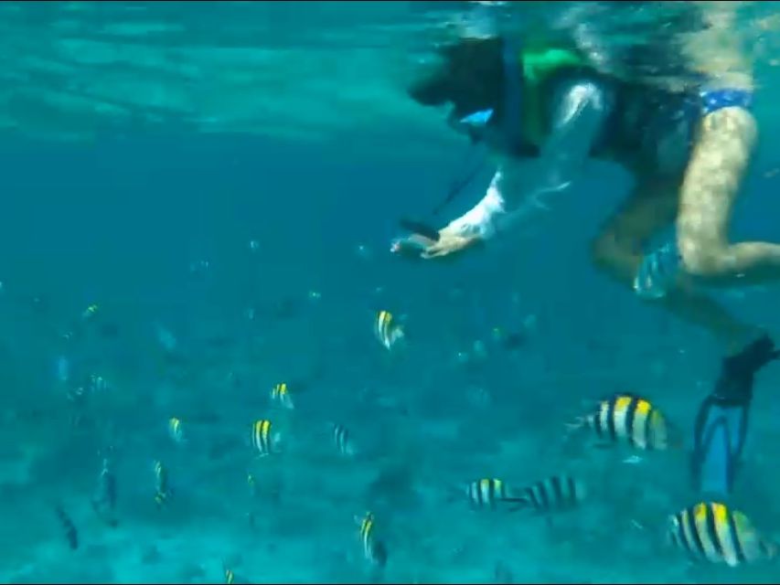 浅瀬のポイントに到着するとシュノーケルとマスクとライフジャケットと魚の餌(パン)を渡され自由にシュノーケルタイムです。水中カメラはセットになっていないのでgoproや防水ケースを持参することをおすすめします。水の透明度も高く魚も多いのでとても綺麗です。私達は防水ケースを忘れてしまったのですが、ガイドの方に貸していただけました。