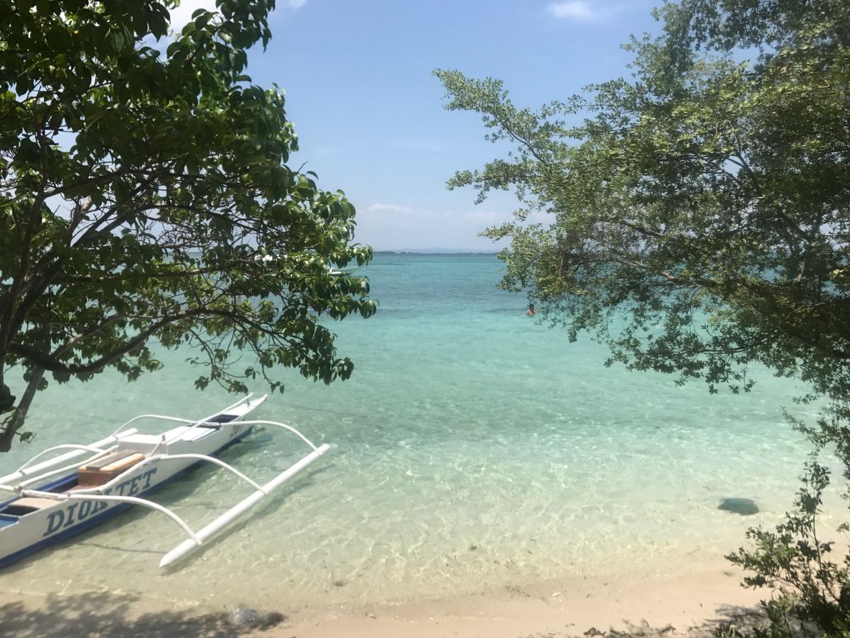 ヒルトゥガン島までボートで30分。桟橋からさらに島の住民が住む村を抜けて10分ほど行ったところにあるプライベートビーチから見る景色は最高で行った甲斐がありました。