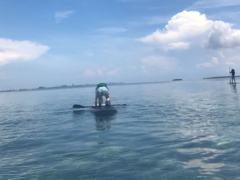 この後のサップで島から島を移動するのが1時間かかるので日焼けが気になる方は日焼け止等の塗り直しをこの時にするのをおすすめします。ガイドさんに紫外線は日本の80倍だからと言われていたのですが、シュノーケル後に塗り直しをしなかったことや、足に塗り残しがあったことから付け根の部分がライフジャケット焼けし、しばらくひりひりしました(笑)サップ自体は動きに難しいことはなく同行していた家族の方でバランスを崩して落ちてる方もいたのですが水面が浅く膝下程度なので安心でした。ガイドさんがサップの間お水を持っていてくれるので欲しい時に水分補給をしたり、写真を撮ってくださりました。1時間離れた離島に着いた時の達成感とサップをしている間の景色が綺麗でとても楽しかったです!
