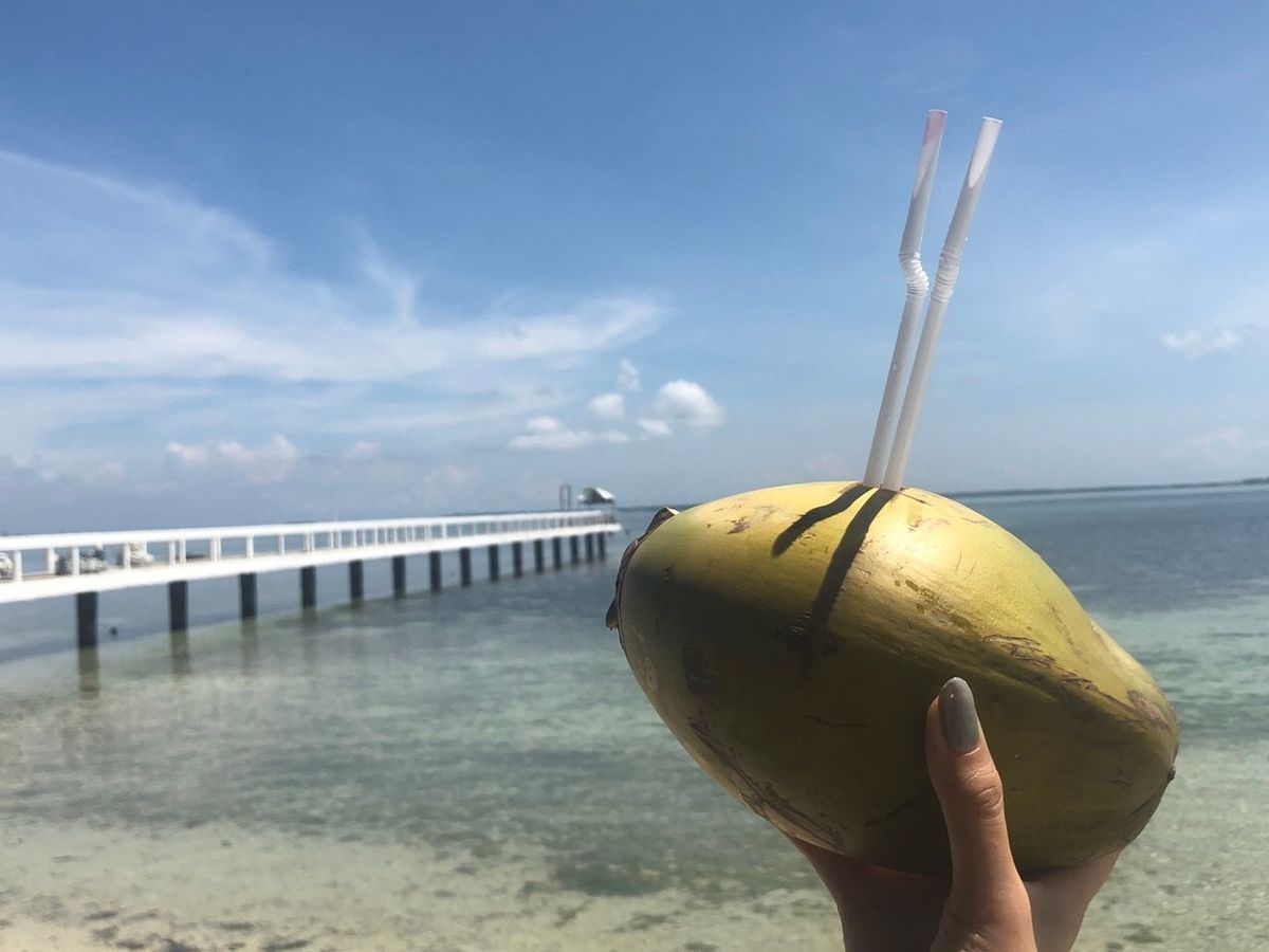 着いた島がまた誰も観光客いなくて。インフィニティな海に感動しっぱなしでした!ココナッツジュースも雰囲気出て、甘くて美味しかった!