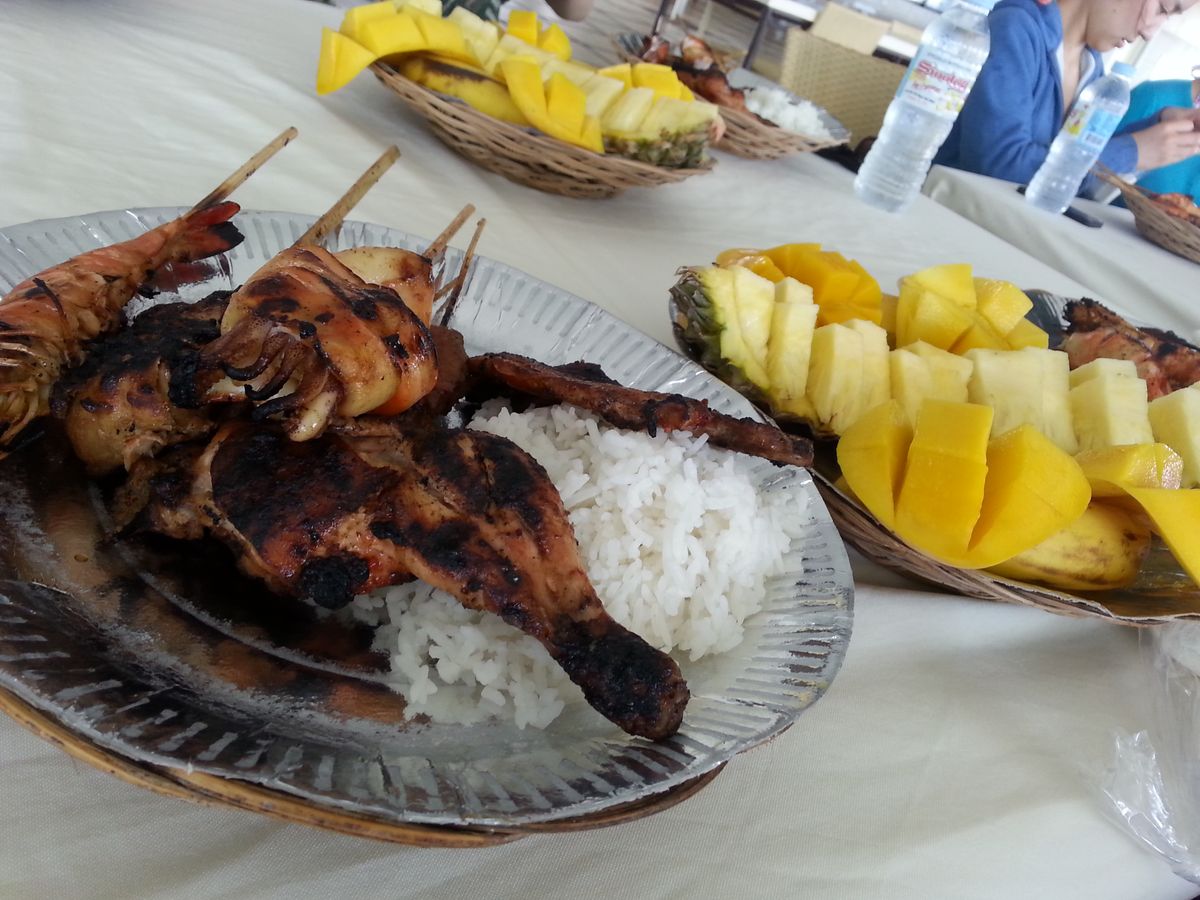 サイトには「豪快な炭火バーベキュー。風が通り抜ける気持ちよい砂浜で、新鮮な海の幸とフルーツをお召し上がりください。」と書かれていましたが、実際は島に向かう途中に船上で焼いたものを、砂浜ではなく、桟橋に続いている箇所で食べました。船上で焼いたため、煙が船内に充満し、ツアー客はみな迷惑していました。また、島に着いた時には、バーベキューは冷めていて固くなっており、食べれたものではなく、マンゴーも熟していないのか非常に酸っぱく、ほとんどのツアー客が食事を半分以上残していました。あと、片づけが面倒なのは分かりますが、200席以上あると思われる広い食事会場に、わずか15人程度のツアー客を相席にするのは非常に不愉快です。現地の人の感覚ならまだしも、日本人の女性ガイドがしきっているのであれば、カップルや夫婦で参加している人が、向かいや隣りの席に他人が座り一緒に食事することを嫌がることぐらい容易に想像がつきそうなものです。ツアー自体はバナナボート10分、シュノーケル10分ほど、ヒルトガン島で冷めたバーベキュー、島内の散策なしで、13時には島を出発して帰りました。風が強く肌寒かったため、全く楽しめないままツアー時間も短縮して帰らされましたが、私達以外にも他のツアー客もがっかりしているのだから、ツアー会社としてお客様からお金をもらっている以上は、何かしらの方法で楽しませようという努力はしてもいいのではないのでしょうか。今まで参加したツアーの中で一番がっかりした内容でした。非常に残念です。