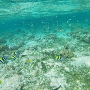 海洋保護区のシュノーケリングでは透明度の高い海でさまざまな種類のお魚を見ることができます。
