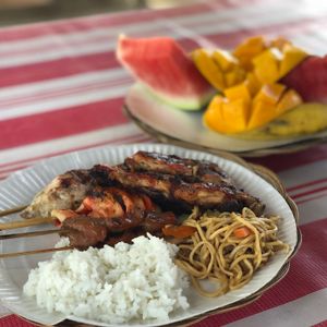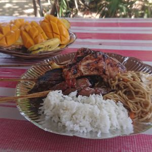 ・BBQは、調理された食事が屋根のあるテーブルで頂けます。女性には少し量が多いです。肉類だけでなく、米や焼きそば、フルーツも付いてきます。よく焼きで美味しかったです。