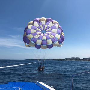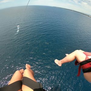 予約時間より早めに現地に到着しましたが、待ち時間がないようにアクティビティの時間を前倒ししていただき、柔軟な対応に好感を持てました。また初めてのパラセーリングでしたが、スタッフの方も親切に説明していただき安心して楽しめることができました。天気にも恵まれ青い海がとてもきれいで空の上で食べるランチとワインは格別でした!スタッフの方にカメラを預けると、船上からたくさん写真を撮っていただけるので帰国後も思い出として写真を見返しています!楽しい時間と思い出をありがとうございました!!