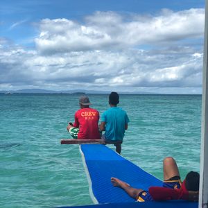 ただ、日本人ガイドさんは最初はちょこっと写真を撮ってくれたものの、気付いたら、いなくなり、シュノーケルをポツンと私、ひとりでやっていました。広い海、水深もそこそこあり、ボートからもちょっと離れていたので少し怖かったです。そして、また気付いたら、日本人ガイドさんはボードに乗って一人で遊んでいました。あと、10分で終わりです。という声かけもボードの上に寝そべりながらでした。お客さんへのおもてなしというよりは、自分の遊びの片手間で対応している、という感じでした。他のフィリピン人スタッフさんは一生懸命海から上がるときやフィンを外してくれたり、などサポートしてくれました。ちょっと日本人としてがっかりしました。