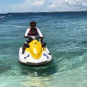 支度が終わるとビーチから水上バイクでボートまで行きます。さらにボートで沖に行きました。ボート上で同意書にサインをして、パラセーリングスタート!徐々に上がっていったのであまり怖くはなかったです。ただ、一番上まで上がったときはかなり高く感じました。