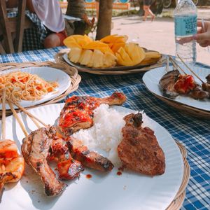 食事はフルーツや串焼きだけではなく焼きそばやミネラルウォーターもついてきました。