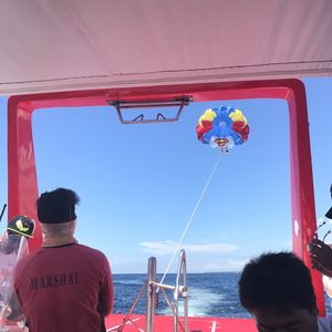 コースはマグナムを選びました。急に上がったので少し怖かったですが、上空では非常に安定しており、パラセイリングを楽しむことができました。天気にも恵まれたので、水平線や遠くの島々もくっきり見ることができ、本当に絶景でした。