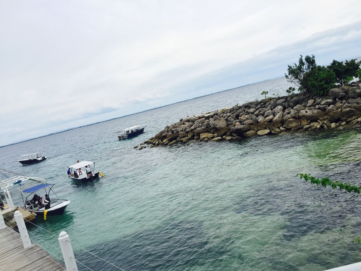 海は見る分には綺麗ですが、中に入るとゴミか浮遊してて汚かったです。島もゴミが多く狭くて汚かったです。砂浜もほとんどないので寝そべるとかは出来ませんでした。晴天に恵まれたので景色は綺麗でした。たくさんの船が接岸していました。こちらの船が一番大きかったように思います。また機会があったら参加したいです。