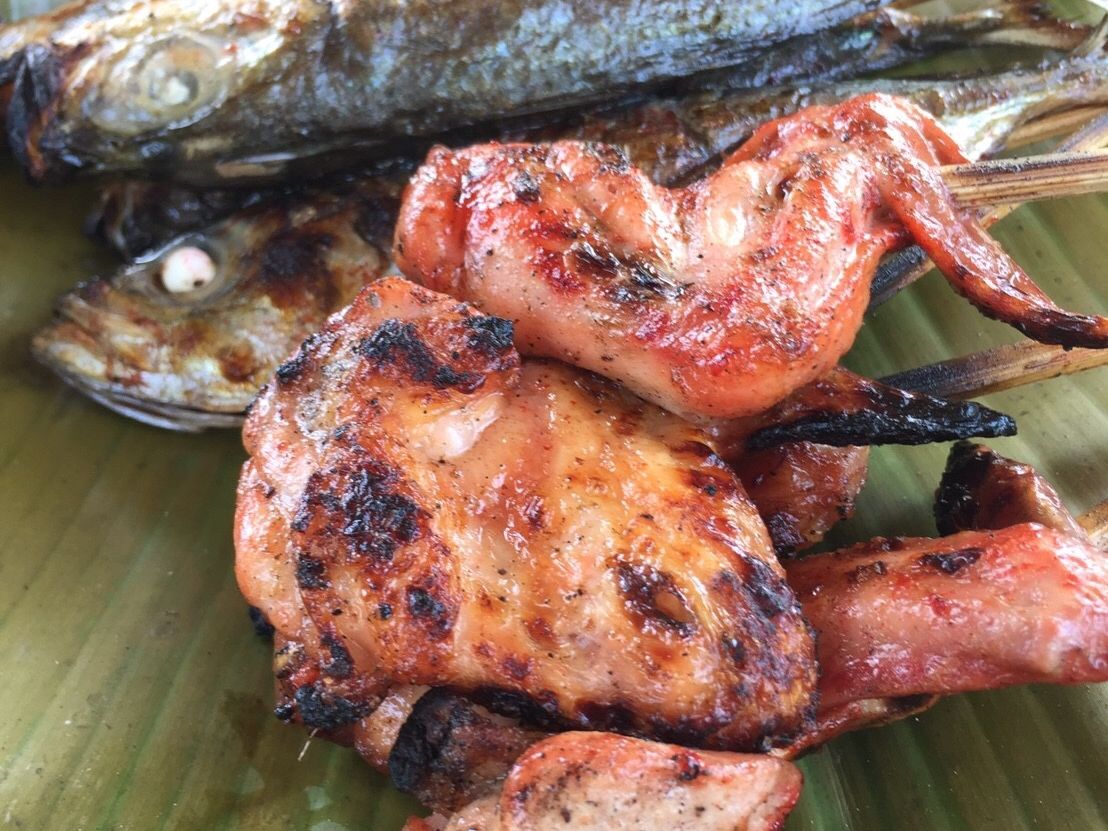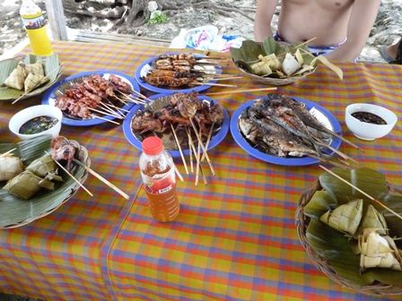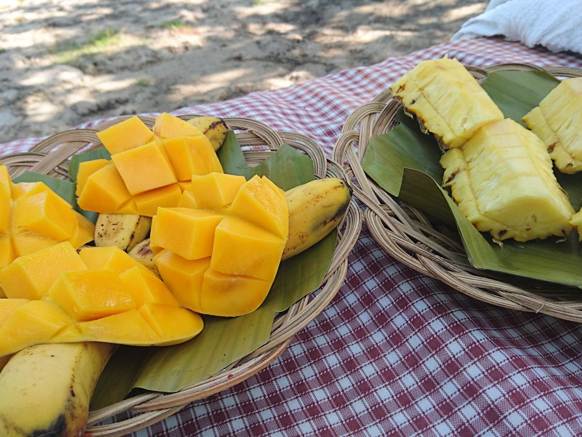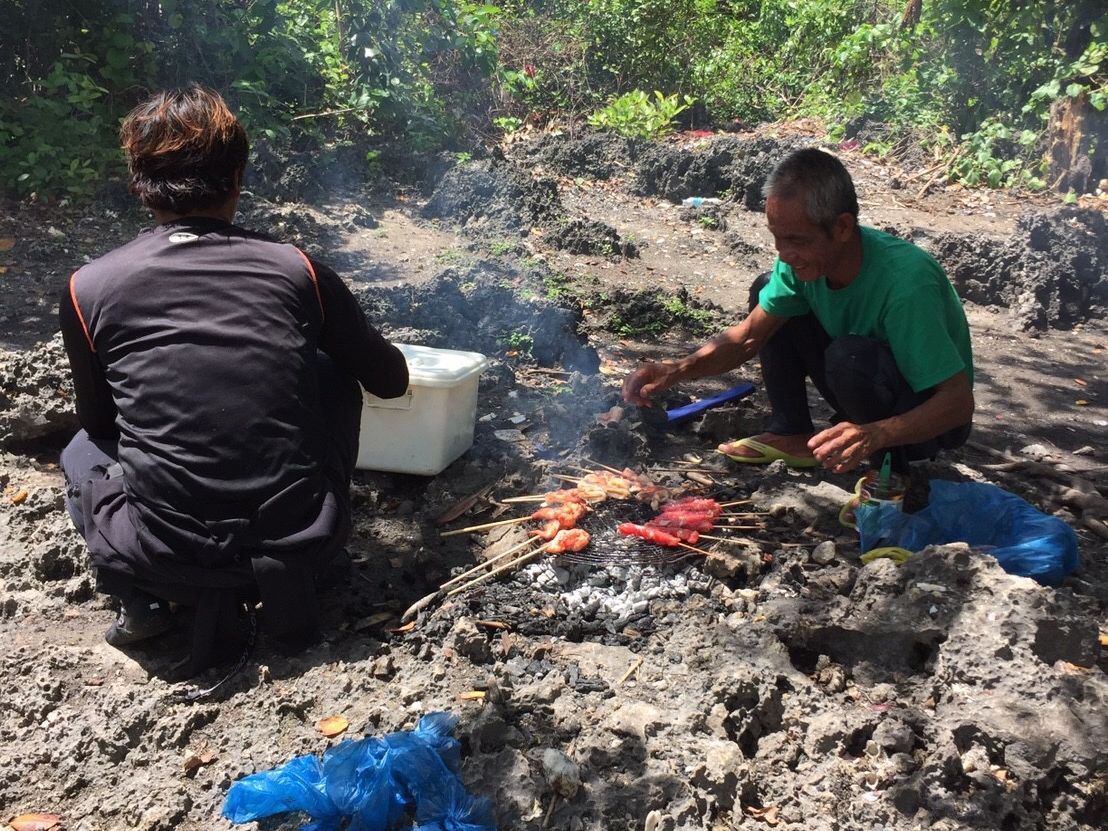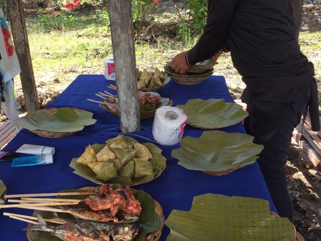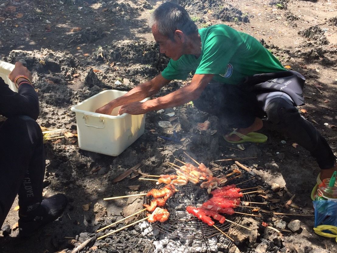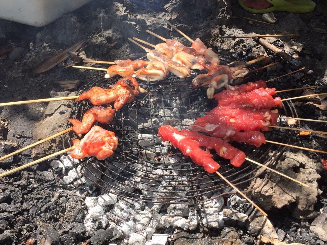 体験ダイビングが終わりアイランドピクニックへ。小さな島に上陸してBBQランチ。魚、イカ、鶏肉、エビなど炭火焼でとても美味しかったです。ご飯はおにぎり風のがありますが固くてあまり美味しくなかったです。デザートはマンゴーとパイナップルでとても美味しかったです。