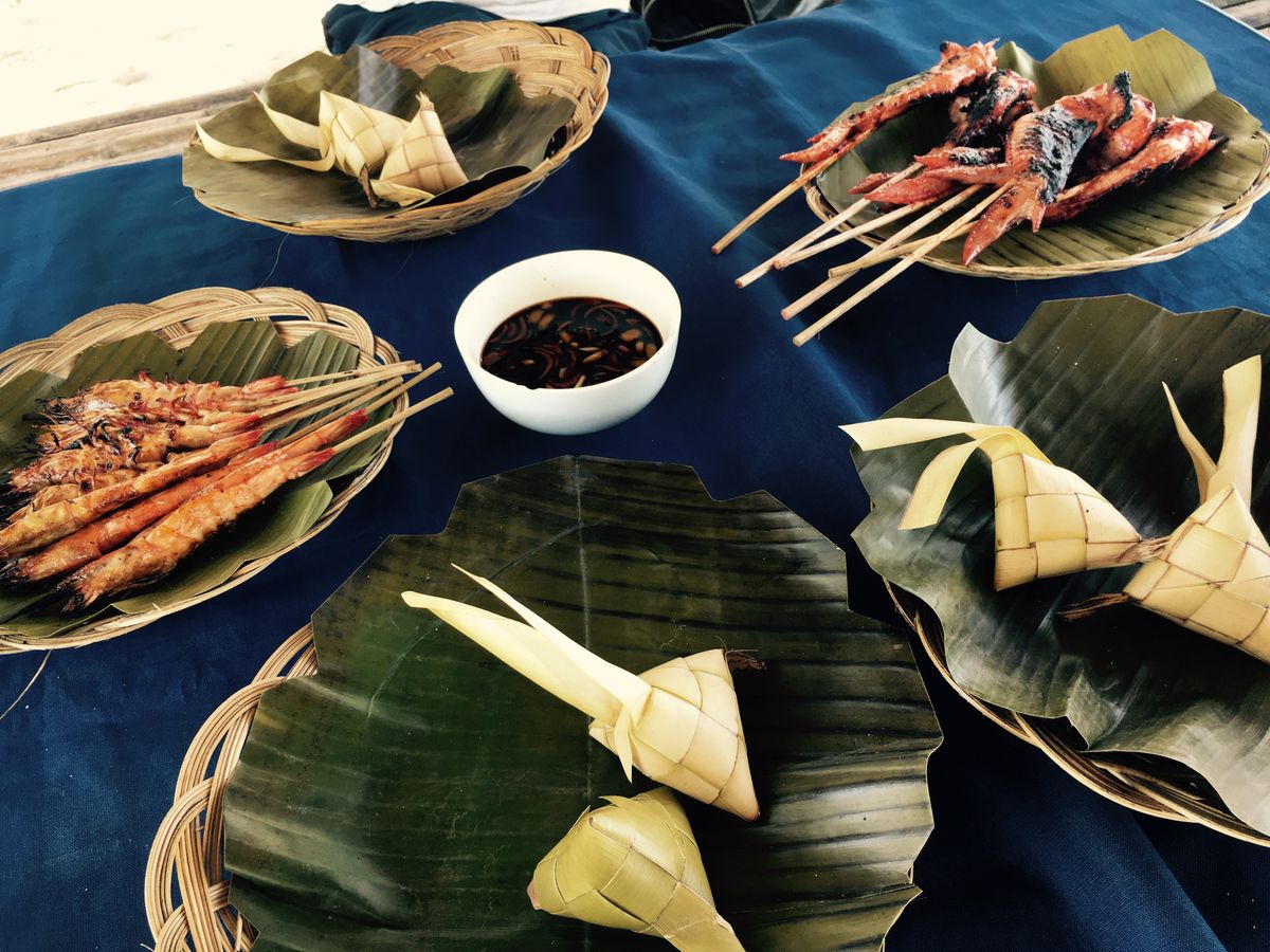 ダイビングを終え、ソルパ島へ行きBBQランチ!かなりギリギリの到着だったのか、海で遊んだり写真を撮ったり島を満喫する時間は30分くらい。お肉や魚の串焼き、果物などたくさんあり、どれも美味しくお腹いっぱい食べ大満足でした。バナナケチャップは子供も食べやすい味付けで美味しい!
