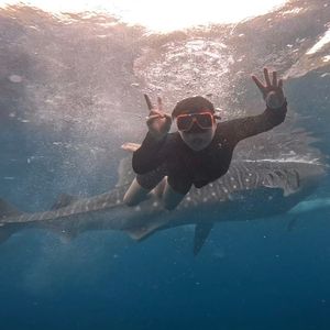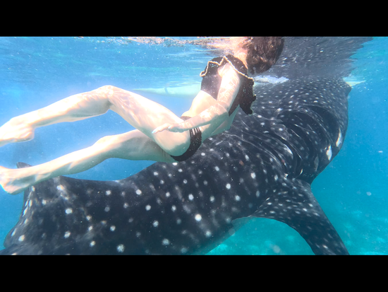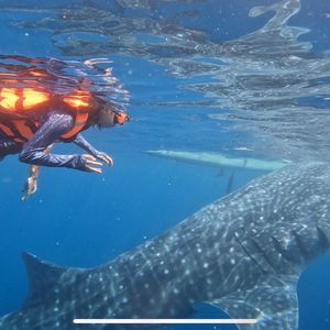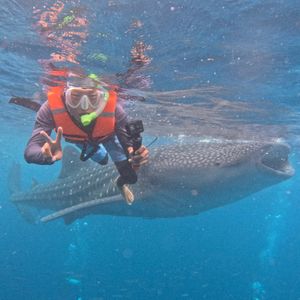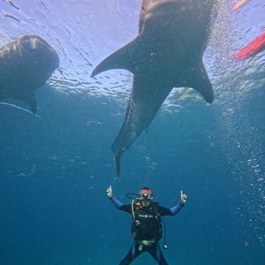 オスロブに着いて説明を受けたあと、すぐにボートで海へ。海の中で見たジンベイザメは本当に大きくてビックリ!すぐ近くをゆっくり泳いでいて、怖さよりも感動の方が大きかったです。スタッフさんが撮ってくれた写真もいい思い出になりました。