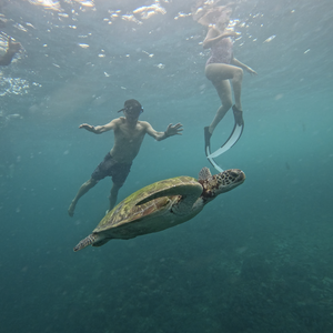 その後移動していった、ツアーではイワシの大群も、ウミガメもしっかりみれて、親も子も大興奮!そこでもたくさんの写真と動画をとっていただきました。ここでは大人用のフィンの貸し出しはありましたが、子供サイズのものはなかったので、岩場もあるので、子供はアクアシューズの持参がおすすめかと思います。