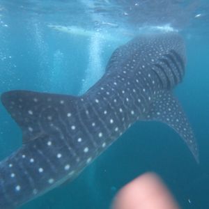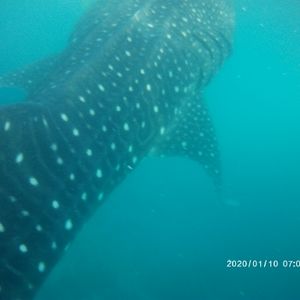 ジンベイザメは浅瀬で見れるため手漕ぎボートを使って向かうことから、普段船酔いする友達も酔い止めを飲まずで船酔いしませんでした。ジンベイザメは本当に近くて、真横を通り抜けて行き、迫力満点でした。また、何匹も通ってくれるので、約30分の間常にジンベイザメと写真を撮ることができました。スタッフの方が優しくて、ずっと写真を撮ってくれたり、また途中からはライフジャケット無しで写真撮影をしてくれて、大変親切でした!!