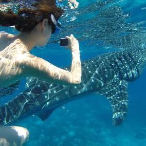 到着すると早速、シュノーケリング。ボートに乗って少し沖まで出て海へダイブ。餌付けされたジンベエザメが手で触れるくらい近くにいて、まさに圧巻の迫力でした。撮影機材は持っていっていませんでしたが、持っていけばと後悔。水中カメラか、iPhoneを防水ケースに入れて持っていけば良かった。