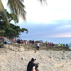 大勢がジンベイザメを見るために集まっています。ガイドさんが手際よく受付などを済ませて、順番を待ちます。飲料水なども準備してくれて至れり尽くせりでした。