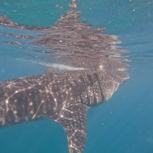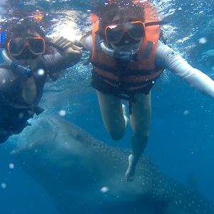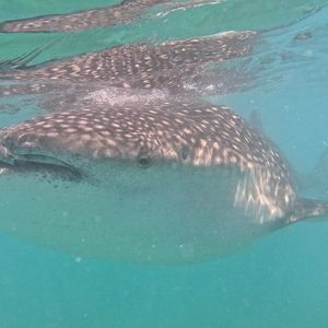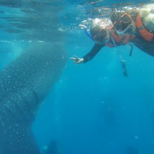 手の触れるくらいの場所までジンベエザメが来ており、泳ぎの苦手な私でも最高の出会いができました。