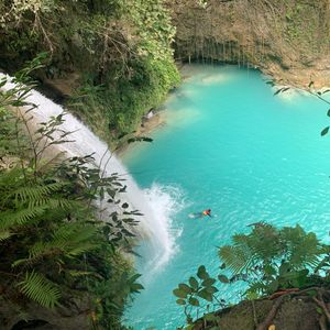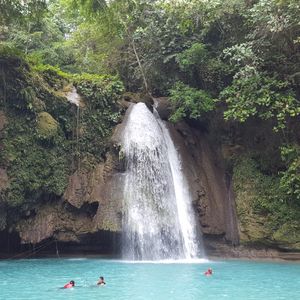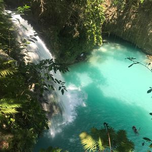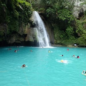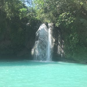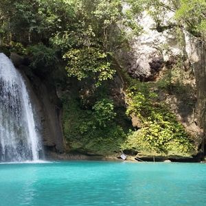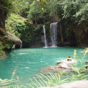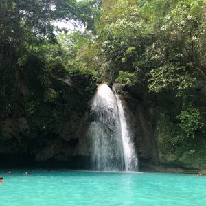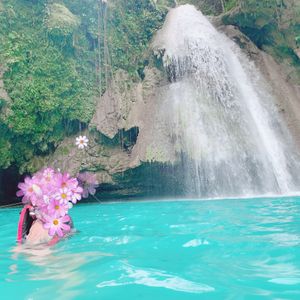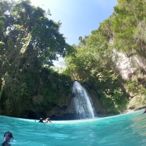 セブ島最大の滝、カワサン滝へ行こう!セブの秘境と言われ、日本では見られないような美しい乳白色のエメラルドグリーンの水の色が魅力です。透明度抜群の滝壺で水遊びができますので、水着は忘れずに。