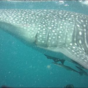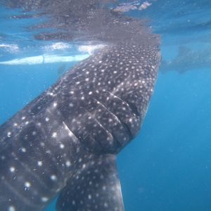 いよいよジンベイザメとの対面、思ってたより大きくて迫力ありました♪ですがやっぱり人気なのか、別のツアー客が多すぎて邪魔な部分が多々ありました。泳げるからいいやと思ってライフジャケット無しで海に入ったのですが、潮の流れが結構早く凄く疲れたのでライフジャケットは着用した方がいいですね!