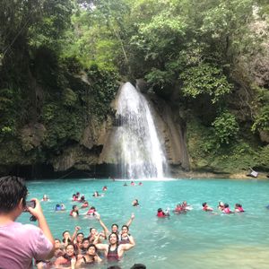 とんでもなく近くでジンベイザメを見れるすごいツアーです!流れとしては、早朝出発でコンビニに寄り朝食を買いに行かせてくれる。そのまま車内で朝食を取ります。車内は寒かったりするので厚めのパーカーや羽織ものがあれば安心かと。寝てるうちにオスロブに着きシュノーケリングやレンタルしたGoProの使い方をレクチャーしてもらい、いよいよ海へ!!海に出る小舟に乗るまでが、その時によって数十分待つ事もあるそうですが、今回は運良く早々に海へ出発。船の横に付いている長い木の棒を掴みながらジンベイザメを観察するのが基本。でもみんな船の近くから離れないように潜ってサメとの写真を撮っていました。ガイドの方に写真を撮ってもらったり、船に乗せてもらった現地の人にも写真を撮ってもらいました。やっぱりガイドさんが撮る写真は綺麗!また、サメが次々に現れるので泳ぎが苦手な私でも十分見れたのですごく楽しめました!海にいたのは約30分くらいでしたが、波が高めで酔いました…朝ごはんを軽くするか、酔い止めの薬飲んで挑んでいればもっと楽しめたと思います。サメとのシュノーケリングを楽しんだ後は軽くシャワーを浴びて、カワサンの滝に移動しました。
