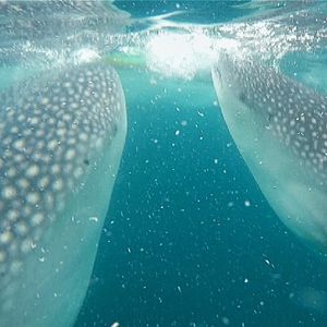 今回のガイドさんは、海の深くまで潜水できたので、優雅なジンベイザメと必死に写真に写ろうとする私たちを、下のアングルからすごく綺麗に撮ってくださいました!