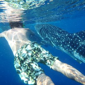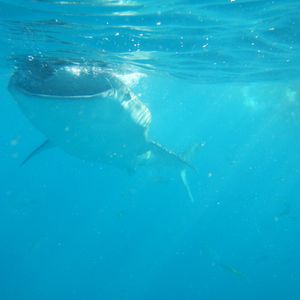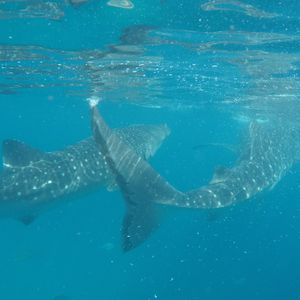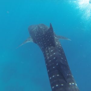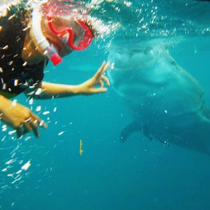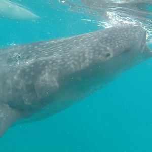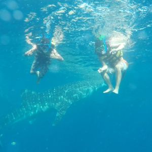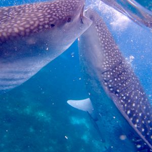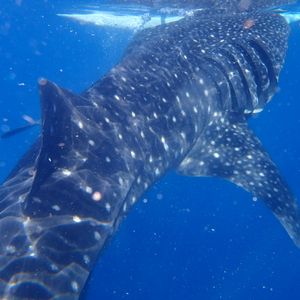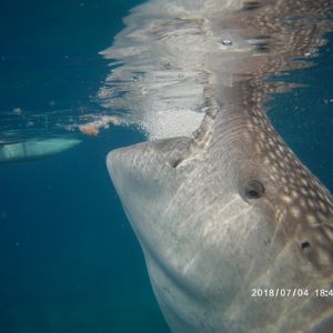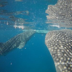 ジンベイザメシュノーケリングは、海岸のすぐ近くに船がたくさんとまっており、こんなに近くに来るのか?と不安になったのですが、何匹かわからないほどたくさんのジンベイザメを見ることができました!