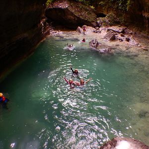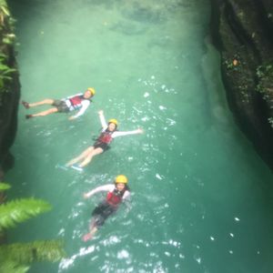 セブ島は2回目、今回は今まで体験していないツアーを探して、この川下りに申込みました。結果は大正解。今までで最高のセブを体験できました。滝からのジャンプもガイドさんが指示を出してくれるので躊躇せずに出来ましたし、もし躊躇しても迂回ルートがあるのでチャレンジ精神がある人もない人も楽しめると思います。また、青く澄んだ水や自然の緑はジブリの世界を思わせるものがありとても幻想的でした。ウォータープルーフのカメラを持っていくと、ガイドさんが写真や動画を沢山撮ってくれます。是非持参して下さい。集合時間は少し早いのですが、希望すれば朝食の為にドライブスルーやコンビニに寄ってもらえたのでご安心を。