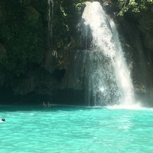 セブ島最大の滝、カワサン滝へ行こう!セブの秘境と言われ、日本では見られないような美しい乳白色のエメラルドグリーンの水の色が魅力です。透明度抜群の滝壺で水遊びができますので、水着は忘れずに。