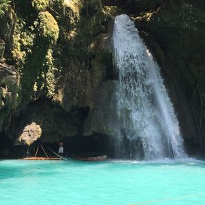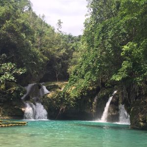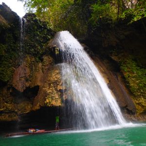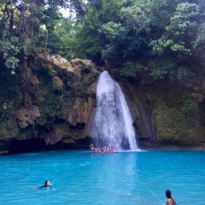 セブ島最大の滝、カワサン滝へ行こう!セブの秘境と言われ、日本では見られないような美しい乳白色のエメラルドグリーンの水の色が魅力です。透明度抜群の滝壺で水遊びができますので、水着は忘れずに。