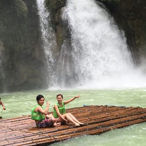 無事到着し徒歩で15分程、素晴らしい滝の登場です。早速着替えていかだに乗り滝壺まで連れて行ってもらいます。当日は大変暑くて気持ちよさも倍増です!