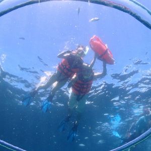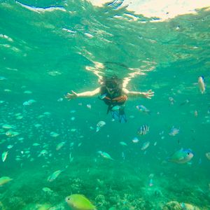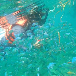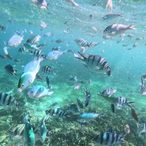 ヒルトゥガン島の付近に船を停めてもらいシュノーケルをしました。時間もたっぷりとってくださり、船の周りを自由にのんびりと泳ぐことができました。サンゴが多く魚もたくさんいましたが、水が少し濁っていました。ナルスアン島で昼食を食べ遊泳エリアをシュノーケルしました。こちらはサンゴはないのですが水質が良く魚もたくさんいました。ホテル付近の海は透明度が低かったので、船に乗って島まで出てよかったです。イメージしているリゾート感いっぱいの海を感じることができました。