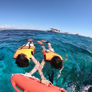 海もキレイで魚はたくさん! 波も穏やかで船の揺れも少なくて良かったです。 充実したいい1日になりました。子供に対する応対が素晴らしかった。いつも気にかけてくれています。安心できました。 1つ注意ですが タオルをホテルのプールで借りて持っていこうとしたら ホテルの方に止められてしまいました。持ち出し禁止のようです。 まあ 当たり前かもしれませんが… バックなどに入れておけばいいですが 思いっきり手で持っていたので(笑)因みにJパーク宿泊でしたが 他のホテルも同様かと思います。気をつけてください