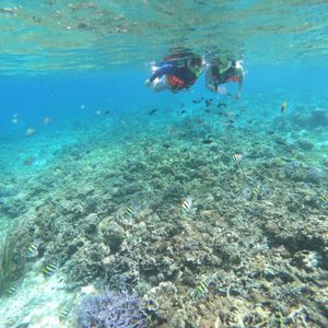 ヒルトゥガン島付近やナルスワン島でのシュノーケリングは珊瑚や