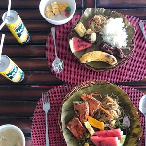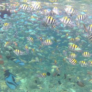 毎日のように雨続きでかなり不安だったけど、本島が雨でもヒルトゥガン、ナルスアンは晴天で本当に嬉しかった。サンゴ礁も綺麗だったし、魚は恐怖を覚えるくらいたくさんいた。他の人が餌をあげてるのを見るのがいいかも。自分でえさを持ってると自分に寄ってきすぎて本当に怖かった。ごはんも平日だったのでバイキング型式ではなく、テーブルに届けてくれるタイプでしたが、食べきれないほど運ばれてきておいしかった。