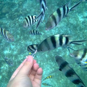 海がきれいで、スタッフさんたちもとても気さくな方たちばかりでとても良いツアーでした。日本人の方が2名ほどいらっしゃって積極的に話しかけていただいたり写真を撮ってくださったり…良い思い出ができました。別会社のツアーにも参加しましたがこちらのスタッフさんたちの対応の方が断然よかったように感じます。船の上も快適で気持ちがよく、海の中も魚たちがたくさん泳いでいて餌やりをできるので楽しかったです。お昼御飯も日本人の口に合うような食事で美味しかったです。ありがとうございました。