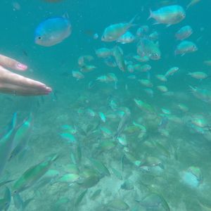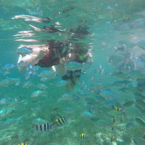 シュノーケルを2か所ででき、色んなお魚をみれました。餌を配布下さるのでお魚がたくさん寄ってきます!GoProをレンタルさせていただきましたが、スタッフの方もたくさん写真を撮って下さり、帰ってきてからの楽しみにもなりました!台風後だったこともありナルスアン島は事前に写真で見ていたほどの美しさではありませんでしたが、それでもあの長い吊り橋を渡った時の経験はとてもいい思い出です。