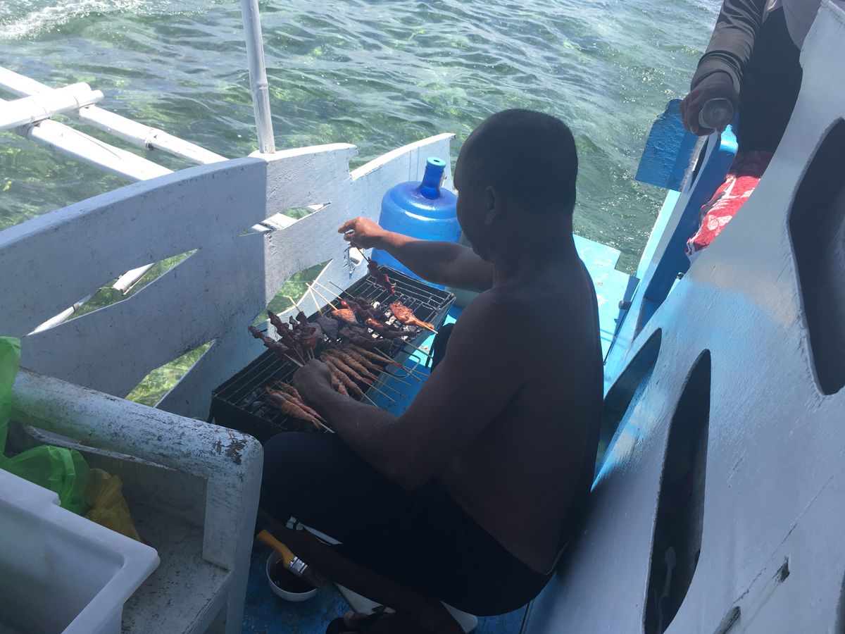 そして船の上で食べるBBQが最高に美味しく、豚肉、海鮮(えび、カニ、イカ)、フルーツには激甘なパイナップルとマンゴーまで!絶品ですよ!!