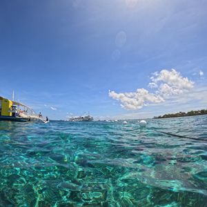 透明度の高い海で魚もたくさん泳いでました。日差しが強いので、日焼け止めラッシュガード必須かも。船がかなり揺れるので酔い止めもあれば良し。