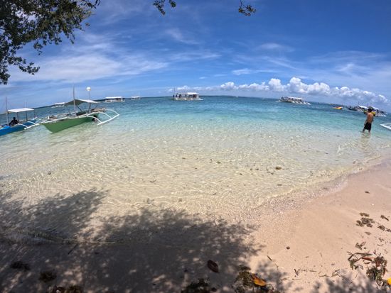 最初に行ったヒルトゥガン島では島の周辺の海に潜り上陸することはなかった。なので後でこれがヒルトゥガン島だと知りました。海の中は綺麗で水深は5〜8メートルくらいあると思います。魚がたくさん泳いでおりガイドさんからパンをもらって魚にあげることができました。ナルスアン島では昼食を食べました。ビッフェスタイルで色々なフィリピンの料理が並んでいました。特に串揚げが美味しかったです。よくわからないカニも置いてありました。可食部が少なくあまり食べた気にはならなかったですが美味しかったです。ナルスアン島は島の方に行ってもあまりすることがありませんでした。島を周るのに一周30分かかると言われていますが、そんなに大きい島ではないのでそれほどかかりません。島内では昼食を食べた後、1〜2時間ほど自由時間があります。桟橋の方に行くと泳げるスポットがあります。こちらで一緒に船に乗ってきたスタッフに、ライジャケットを出してもらって泳ぐことをお勧めします。ガイドさんも優しく終わった後に射撃場に行く予定だったのですが、予約をとっていただきました。非常に助かりました。下ろす場所はある程度自由が効くみたいで、レートのいい両替所をガイドさんに教えていただきそちらでおろしてもらいました。レートは2025年3月12日で0.3720でした。これはマニラ空港のレート同じでした。非常にレートが良かったです。